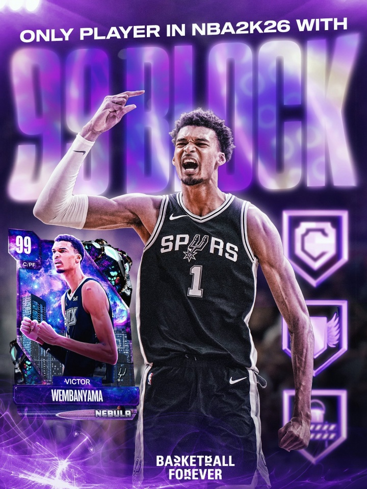 同时,文班也是NBA2K26中唯一一个在盖帽达到这个值的球员。