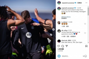 体育资讯4月19日讯 巴萨门将什琴斯尼更新社媒动态,感谢大家的生日祝福。