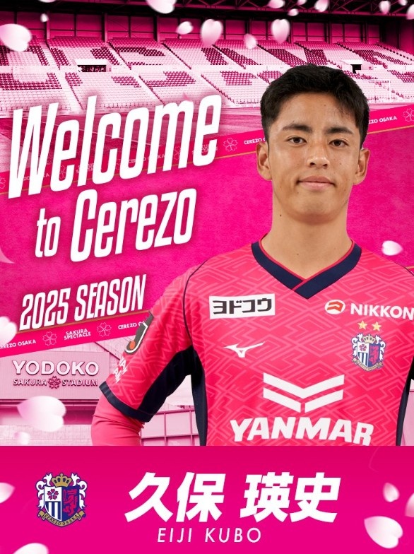 在加盟公告中,久保瑛史表示:“大家好,我是久保瑛史,将身穿26号球衣。非常高兴能成为大阪樱花的一员,我会竭尽所能帮助球队争取胜利,也恳请大家继续支持我!”